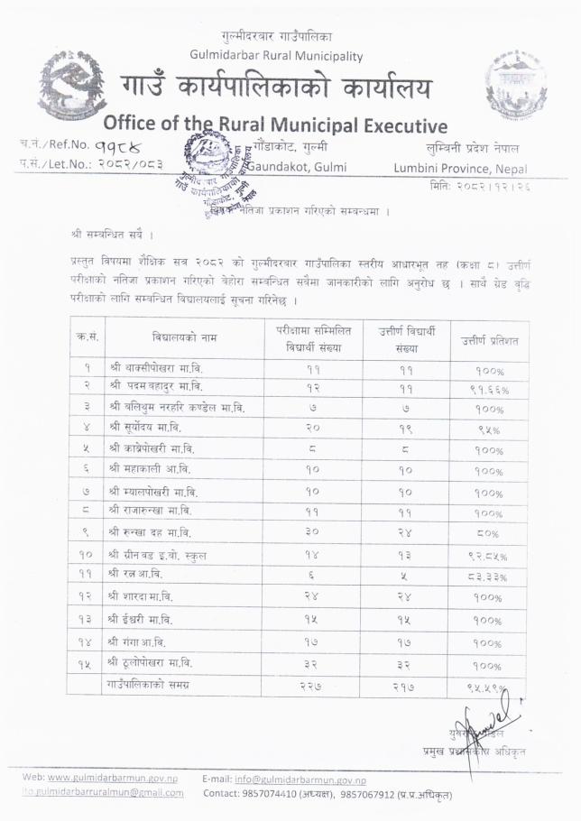 » कक्षा ८ को नतिजा प्रकाश गरिएको सम्बन्धमा ।