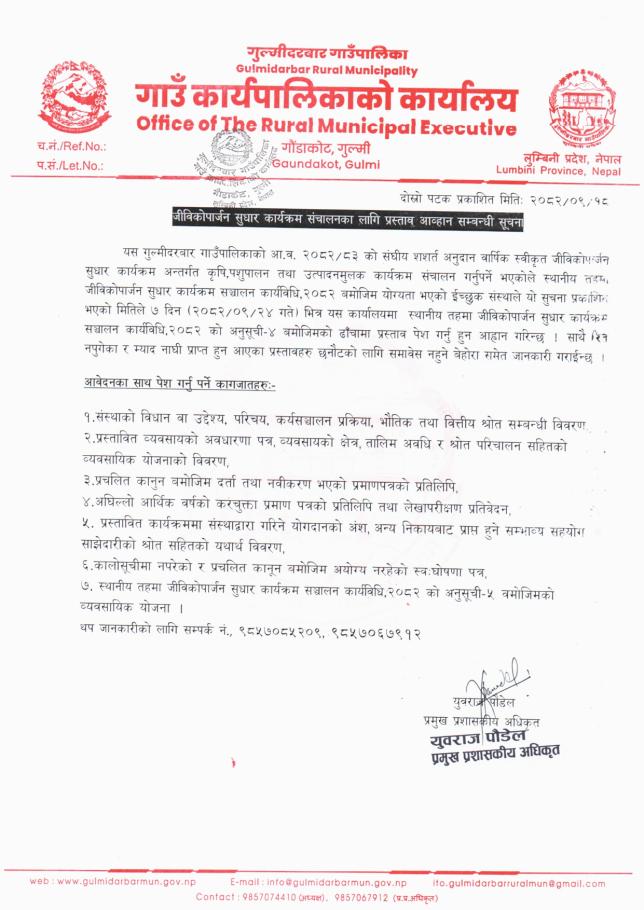जीविकोपार्जन सुधार कार्यक्रम संचालनका लागि प्रस्ताव आव्हान सम्बन्धी सूचना