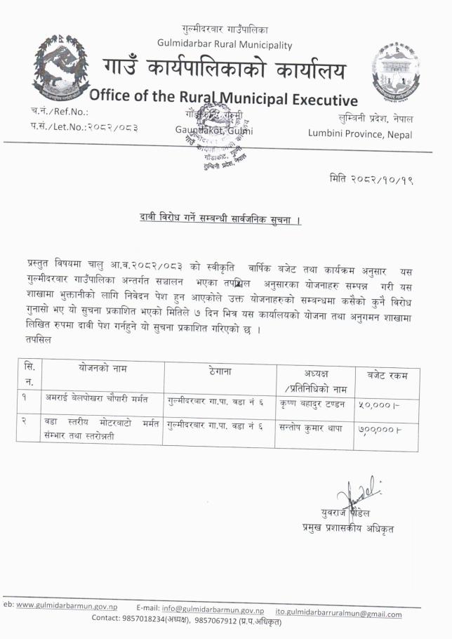 दाबी विरोध सम्बन्धी सार्वजनिक सूचना