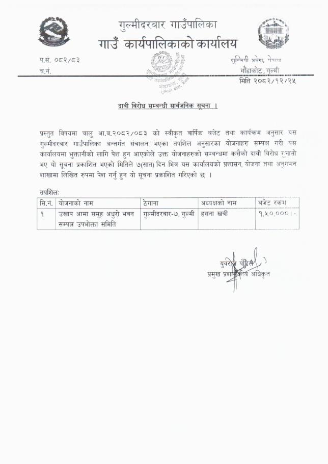» दाबी विरोध सम्बन्धी सार्वजनिक सूचना ।