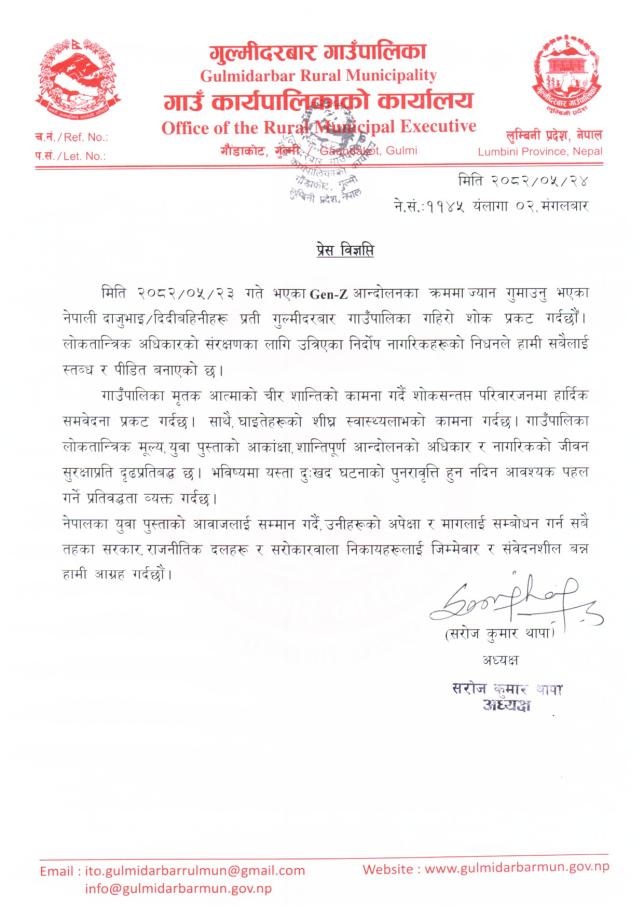 गुल्मीदरबार गाउँपालिकाका आर्थिक सहायता कार्यविधि २०८१
