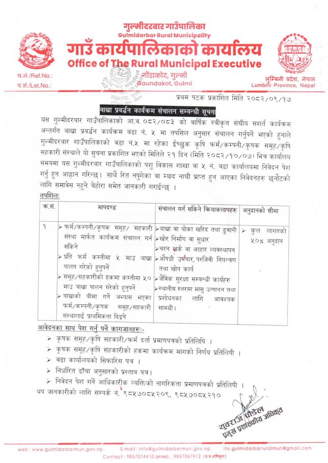 बाख्रा प्रवर्द्धन कार्यक्रम संचालन सम्बन्धी सूचना