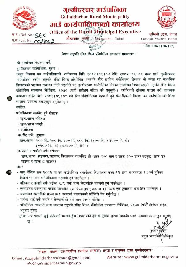 » राष्ट्रपति रनिङ्ग शिल्ड प्रतियोगिता संचालन सम्बन्धी सूचना ।