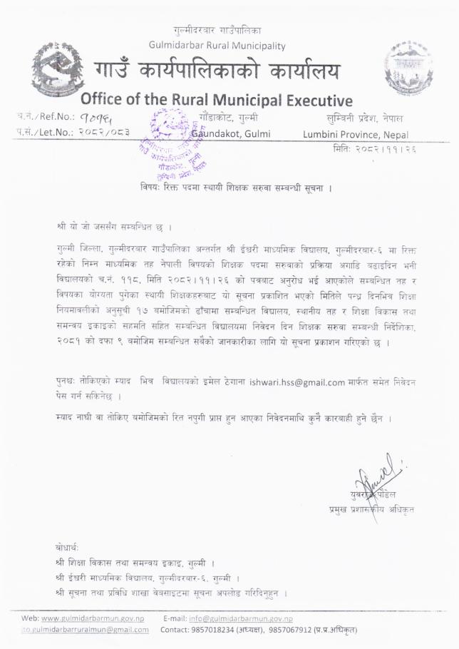 रिक्त पदमा स्थायी शिक्षक सरुवा सम्बन्धी सूचना
