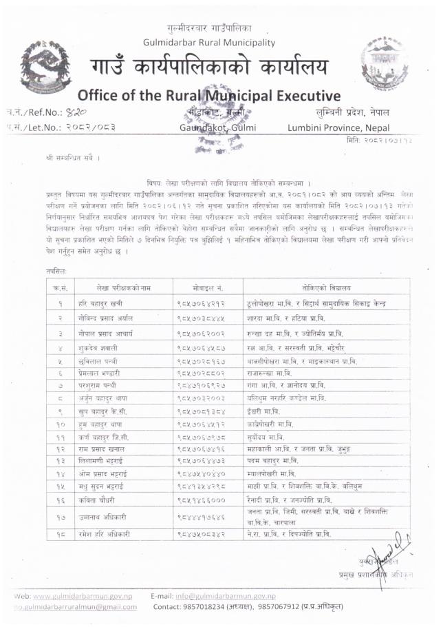 » लेखा परिक्षणको लागि विद्यालय तोकिएको सम्बन्धमा ।