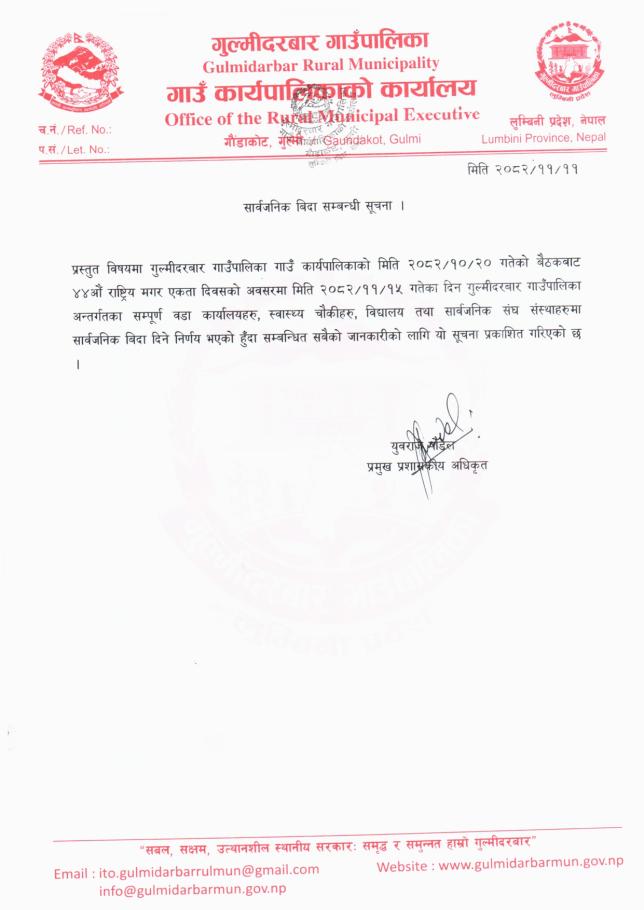 सार्वजनिक बिदा सम्बन्धी सूचना ।